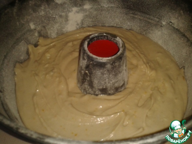Форму смазать маслом и присыпать мукой. Вылить тесто. Выпекать 25 мин при 190-200'.