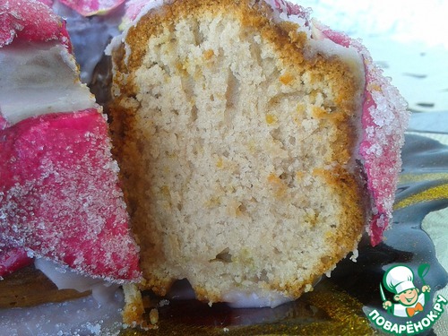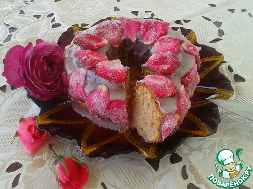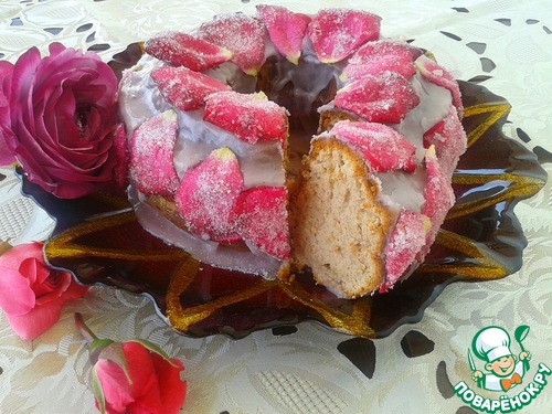 | Кекс на основе розового сиропа с розовой глазурью и засахаренными розовыми лепестками! |