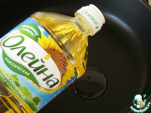 В нагретую сковороду наливаем растительное масло.