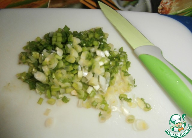 Порезаный мелко зеленый лук также отправляем к нашей смеси.
