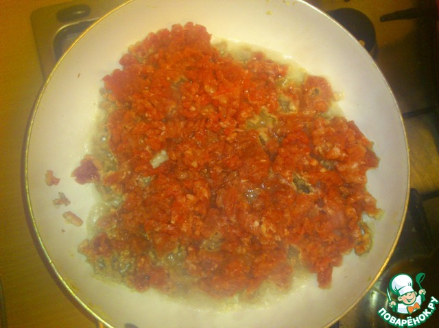 Фарш обжарить на сковороде с маслом. Фарш присолить и поперчить.