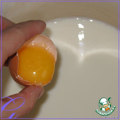 Отделить желток (белок сохранить в отдельной посудке), смешать с молоком.