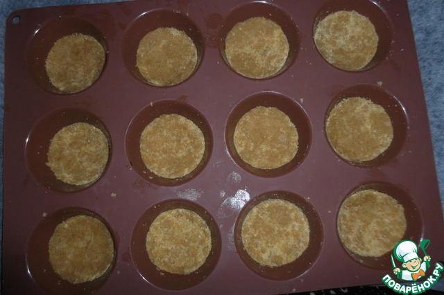 3. Выкладываем на дно силиконовой формы и уплотняем смесь. (Можно использовать бумажные формочки).