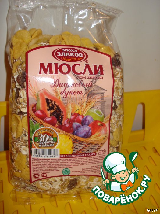 Высыпать мюсли в творог, перемешать и дать постоять минут 30, чтобы мюсли набухли.