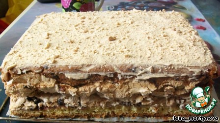 Смазываем остывшие коржи кремом и складываем начинкой внутрь.