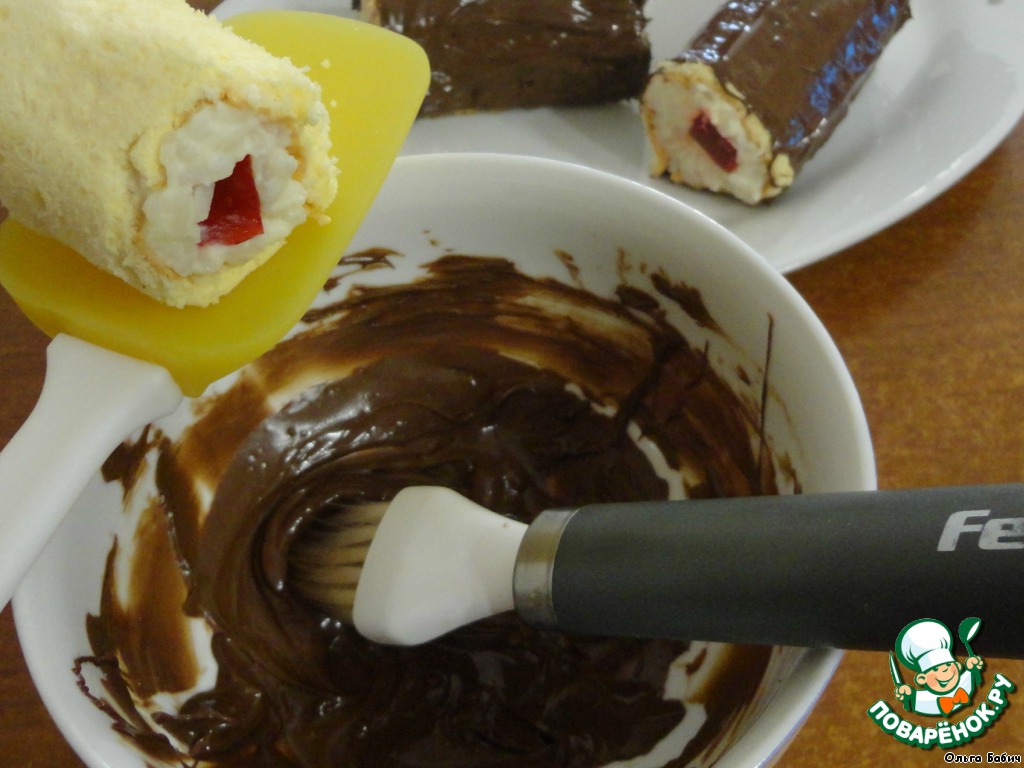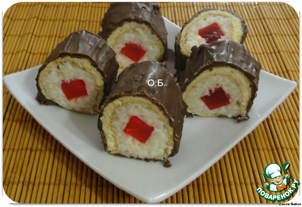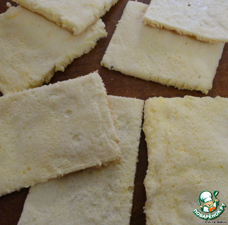 Разрезать бисквит на 12 прямоугольников, размером 12 на 8