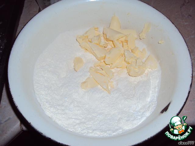 Насыпать в глубокую миску муку, сахарную пудру, ванилин, перемешать. Добавить порубленное охлажденное сливочное масло.