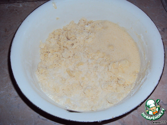 Растереть в крошку. Яйцо взбить до пены, влить в крошку и хорошо перемешать.