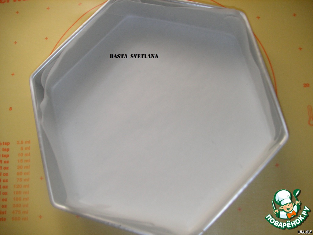 Смазываем форму маслом или маргарином. Но я просто выложила форму пергаментной бумагой.