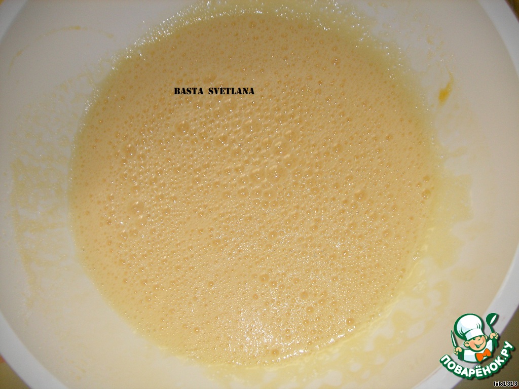 Яйца хорошо взбиваем со стаканом сахара до его полного растворения.