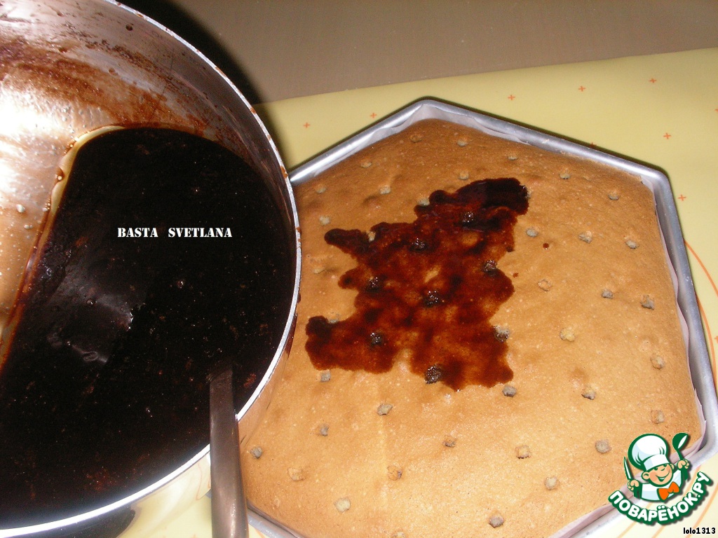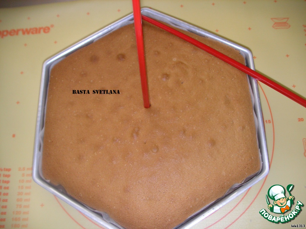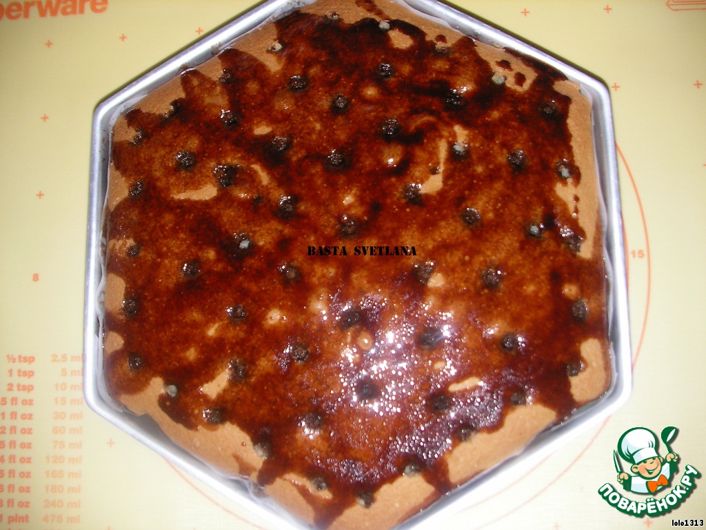 После выпечки бисквита можно вместо дырочек разрезать кекс на ромбики и затем уже пропитать сиропом.