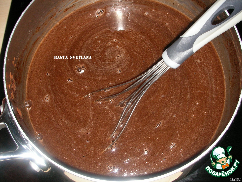 Размешиваем сахар+какао+ванилин, сверху кусочек масла, заливаем стаканом воды.
