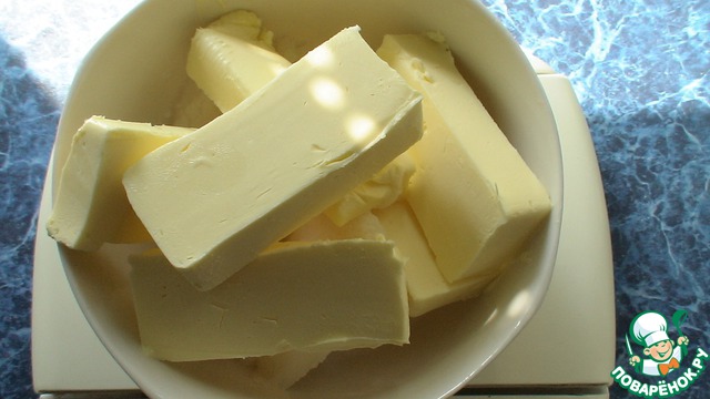 В миску нарезать масло кубиками и размягчить в микроволновой печи.