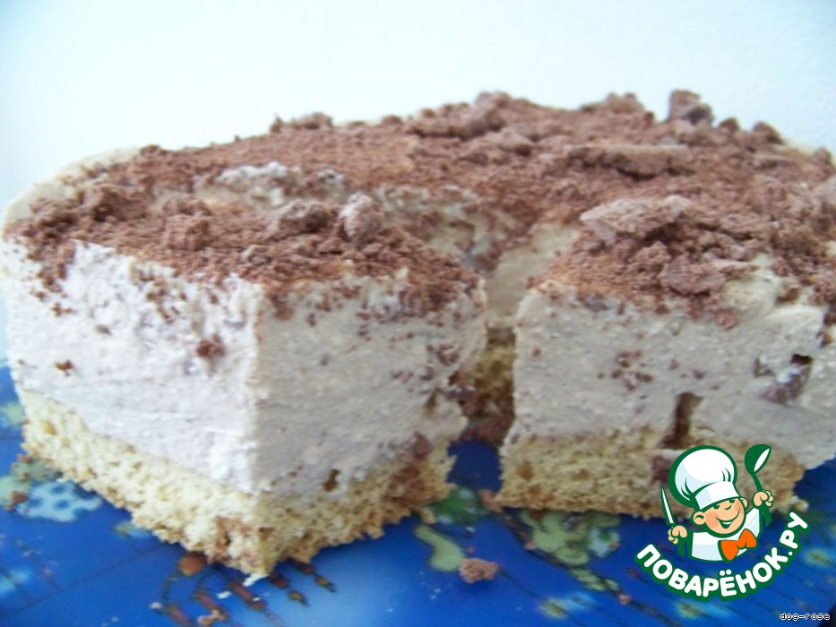 | Вкусный, нежный, легкий торт к празднику. Много творожно-сливочной начинки с добавлением кофе и шоколада, и совсем тонкий легкий коржик. Готовить нужно накануне подачи, чтобы ночь тортик простоял в холодильнике. |