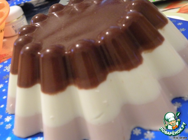 1-2 столовые ложки сахара, какао (при желании можно добавить и ванильный сахар или пудру, как сделала я), плюс шоколад (по желанию) растопим в горячем желатине, дадим подостыть… Заливаем в форму и ставим в холодильник до застывания (примерно 30 минут, можно на 10 минут в конце поставить в морозилочку)