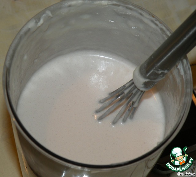Теперь займемся другими слоями… Желатин набирает молоко пока… Сметану, тем временем, смешаем с творожным сыром, добавим 100 грамм сливок и 2-3 столовые ложки сахара (выбирайте сами уровень сладости, я очень сладкое не люблю, к примеру), теперь хорошенько все взбить миксером. Желатин с молоком растапливаем на плите, даем остыть немного и вливаем этот микс во взбитую нами ранее массу, хорошо перемешиваем.