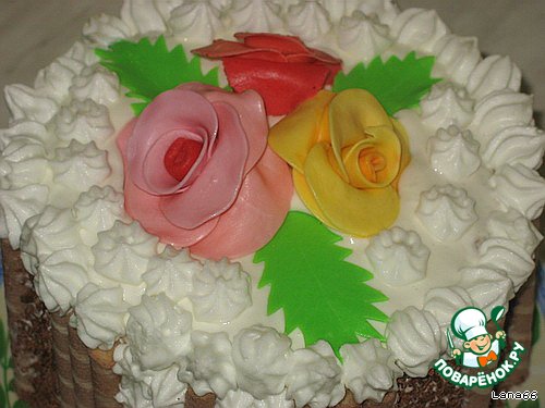 У меня остались взбитые сливки и я обмазала верх и бока торта.