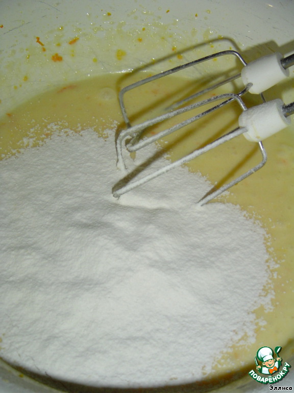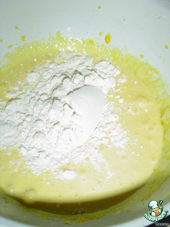 и муку с разрыхлителем, хорошо перемешиваем.