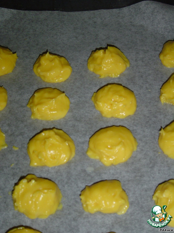 Противень застилаем пищевой бумагой и на нее ложкой выкладываем тесто на расстоянии 3 см друг от друга. Выпекаем около 30 минут при температуре 180 град.
