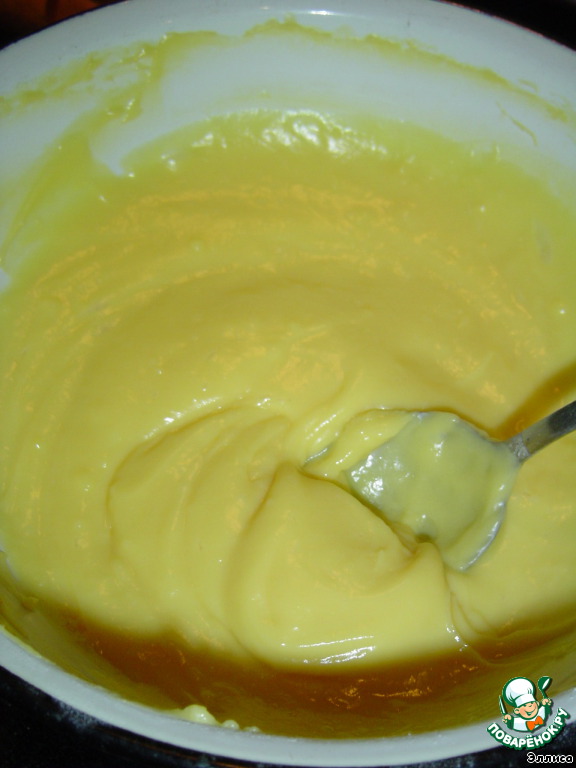 корж смазываем заварным кремом,