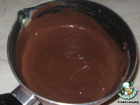 1/3 крема отложим в другую посуду и кусочками кладем шоколад в еще горячий крем.