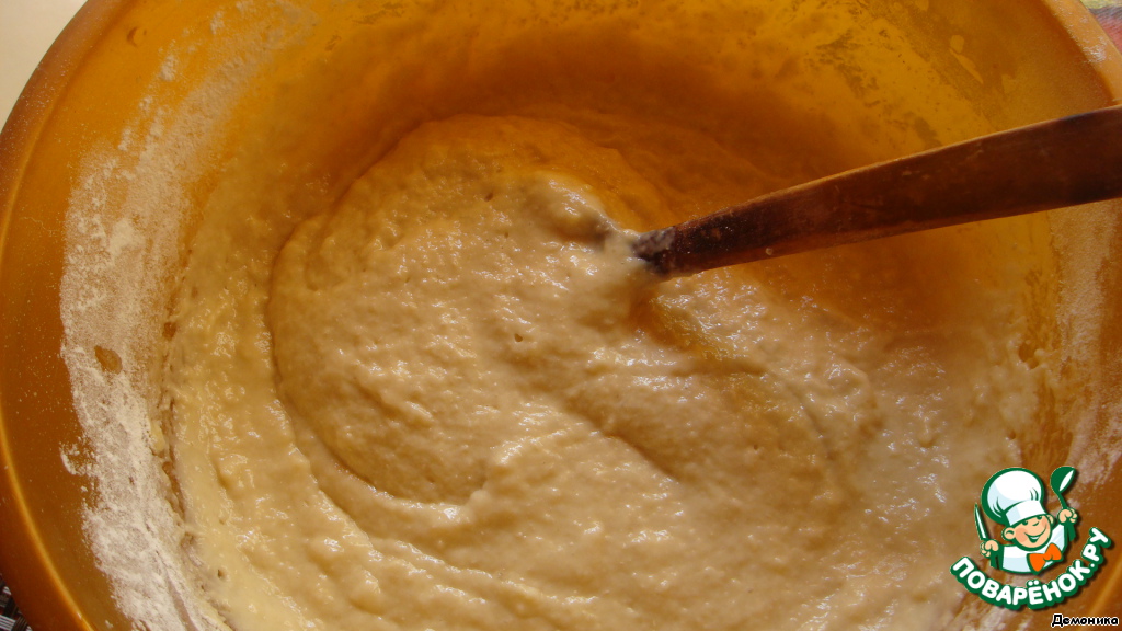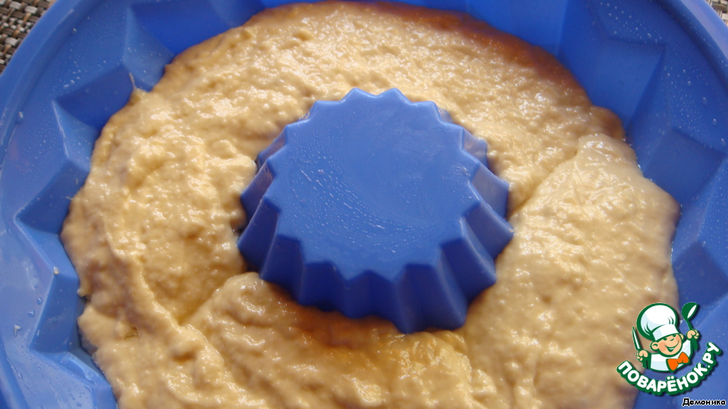 Форму (желательно в виде кольца) смазать маслом. Вылить тесто и оставить в тепле на 30-40 минут.