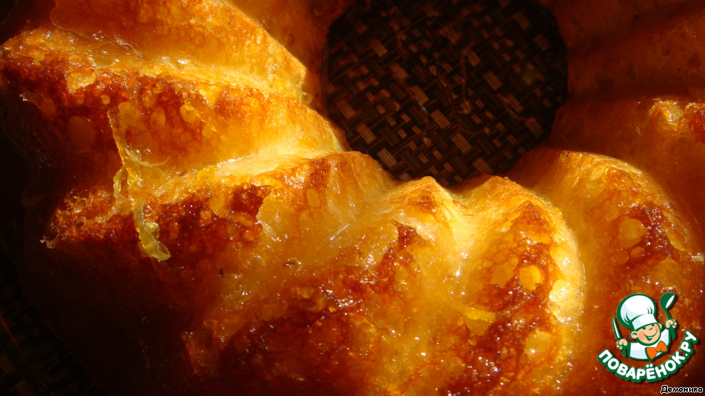 Горячим сиропом обильно полить саварен. Сироп используется весь.