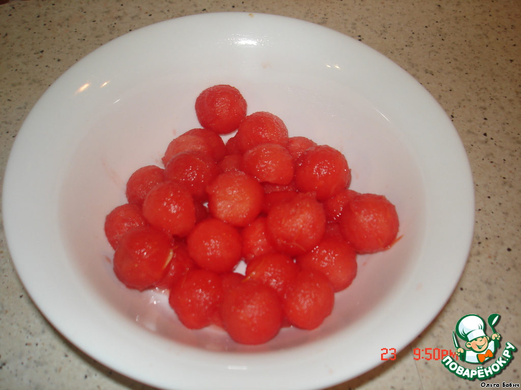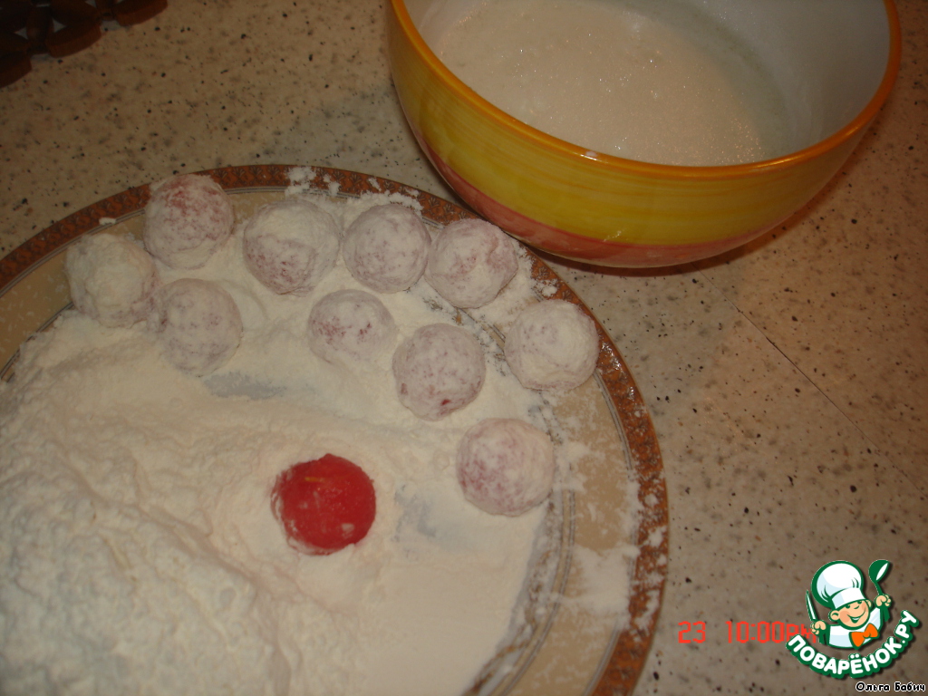 Обмакнуть арбузные шарики в муке, затем в кляре