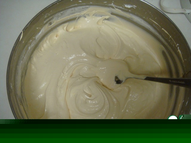 Сделать крем, взбить сливки, добавить вареную сгущенку и опять хорошо взбить, крем получается густоватым.