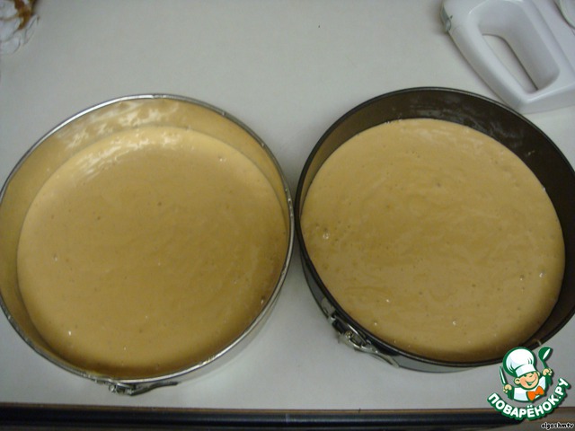 Выпекать при температуре 175-180 градусов минут 40. Или проверить, когда зубочистка выходит сухая. Я ставлю сразу две одинаковые формы вместе, получается намного быстрее.