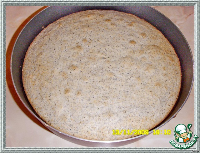 пока корж не отстанет слегка от стенок формы по окружности. Проверяем зубочисткой в центре (должна выйти сухой).