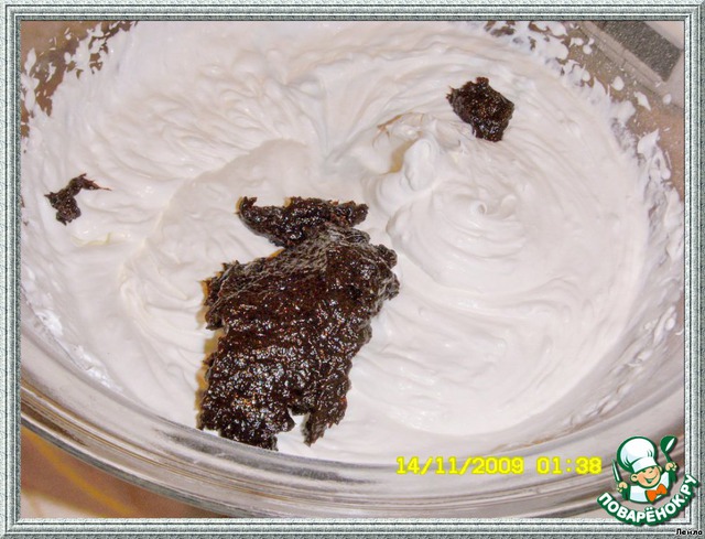 1/4 чашки жирных сливок, 2 и 1/4 ч. ложки порошка эспрессо (капуччино) растворить в 1/2 ст. ложки кипятка.
