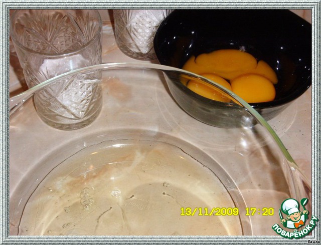 Отделить белки от желтков. Взбиваем белки и 1/3 ст. сахара