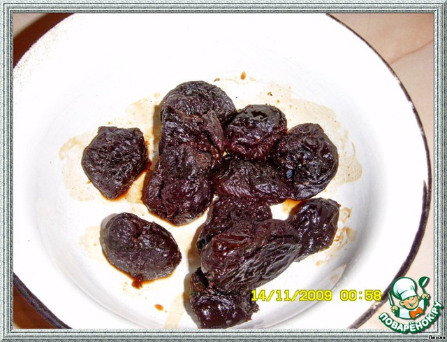 Но напишу, как должно было быть по рецепту. Заливаем чернослив чаем и варим, пока он не станет мягким, а чай не впитается. Охлаждаем. Делаем пюре из чернослива с сахарной пудрой.