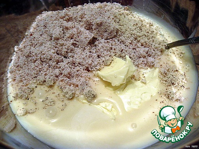 1 ч. л. соды погасить уксусом и снова все перемешать.