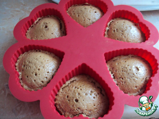 Поставить в разогретую духовку и выпекать при температуре 200 градусов около 15-20 минут, если хотите, чтобы серединка получилась жидкой (словно с сочной начинкой), то время выпечки уменьшите на 3-4 минуты. Готовые десертики слегка остудите в формочках.
