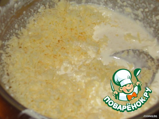 Добавить в смесь половину тертого сыра.