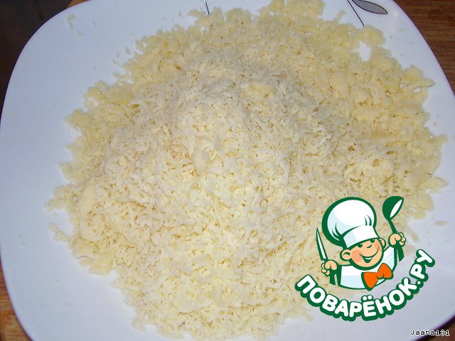 Поставить разогреваться духовку при температуре 210 градусов. Сыр натереть на мелкой терке.