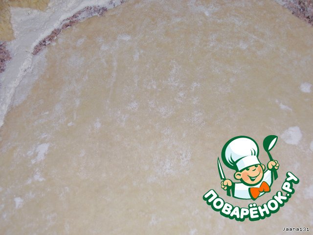 Раскатать в пласт толщиной примерно 0,5 см.