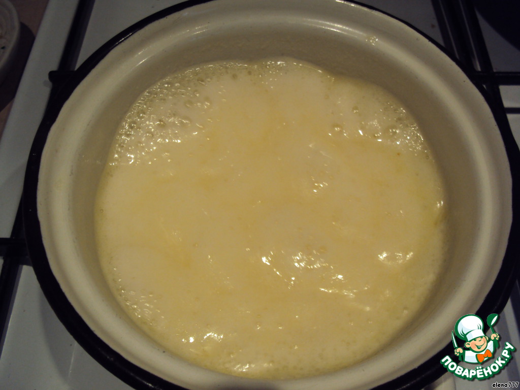 Сначала масса будет пениться лёгкой пеной, когда карамель слегка загустеет и пена станет булькать медленнее - сливочно-молочная карамель готова.