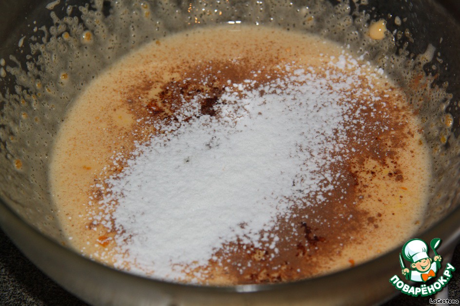 Добавить цедру 1 апельсина, корицу и крахмал.