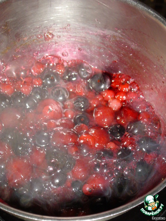 К ягодам добавляем сахар, ставим на плиту и варим до загустения.