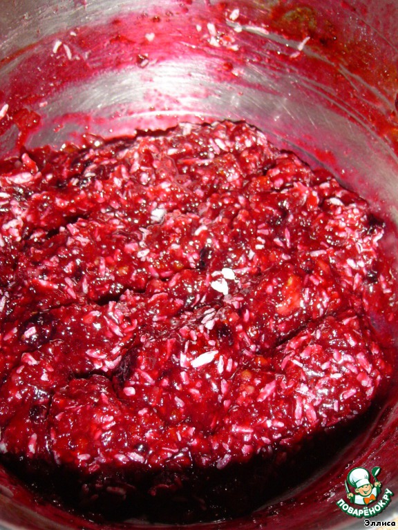 Даем остыть и измельчаем все блендером. Добавляем измельченные орехи и кокосовую стружку,
