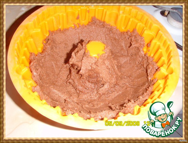 Для приготовления нам понадобится форма в виде кольца диаметром примерно 20 см.Лучше взять побольше и повыше,для перестраховки,чтобы не вывалился пирог,И хорошо испечся кексу. Выкладываем(распределяем) тесто в форму, стараясь, чтобы тесто "выходило" за края формы(чтобы осталось для закрытия верха-крема).