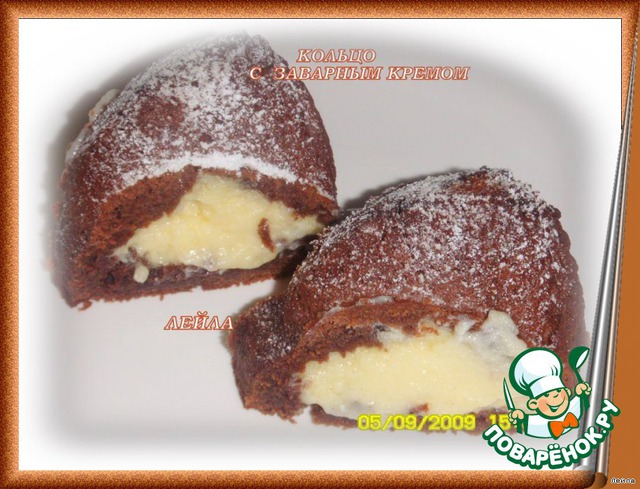 Разогреваем духовку до 180 градусов. Ставим выпекаться кольцо на 30 минут. Готовое кольцо посыпаем сахарной или ванильной пудрой.