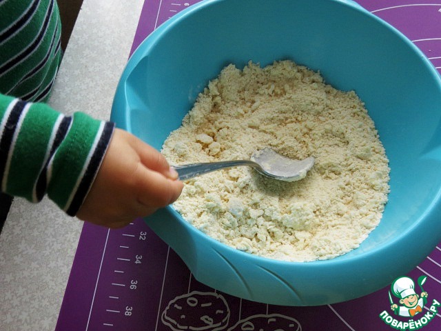 ... растираем в мелкую крошку. Мой внук Славочка тоже принимал участие в приготовлении печенек для девочек.