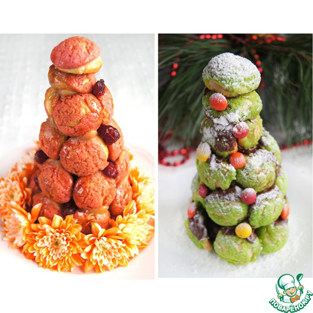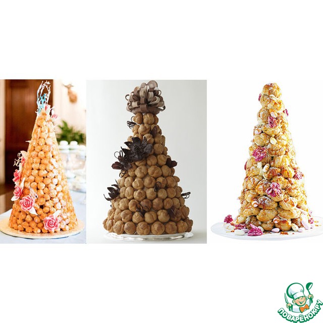 Однажды на такой свадьбе среди приглашённых оказался французский кондитер. Традиция поцелуя через хлебо-булочное заграждение немало его потешила, но брутальная форма подачи претила тонкому французскому вкусу. По возвращении на родину кондитер создал десерт, представляющий собой изящную горку из маленьких заварных "булочек" со сладкой начинкой, затейливо украшенную орехами, карамелью и цветами. Традиционно это свадебный десерт, но строгих ограничений не имеется, а потому это лакомство может быть предложено гостям, собравшимся по случаю крестин или, скажем, Рождества.