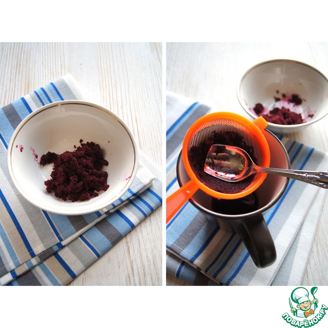 Приступаем. Свеклу натереть на мелкой тёрке, отжать сок. Одной столовой ложки сока для окрашивания было достаточно.