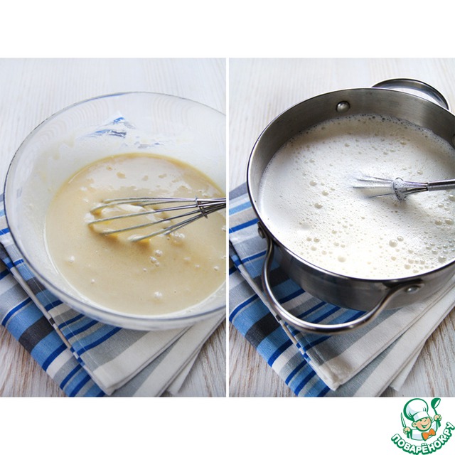 На среднем огне варить молочно-желтковую смесь до загустения, регулярно помешивая венчиком во избежание образования комков.