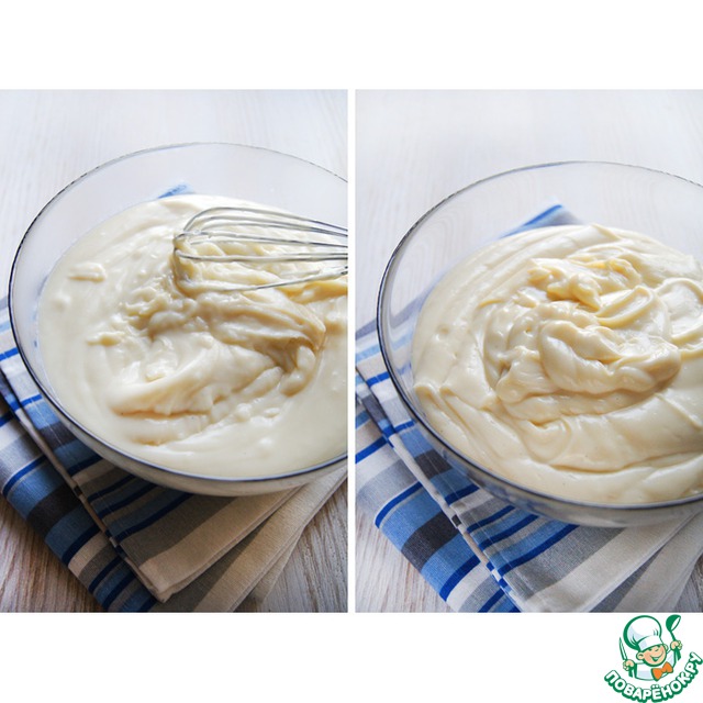 Крем практически готов. Там нет лишь взбитых сливок, но мы вмешаем их в крем непосредственно перед его использованием.